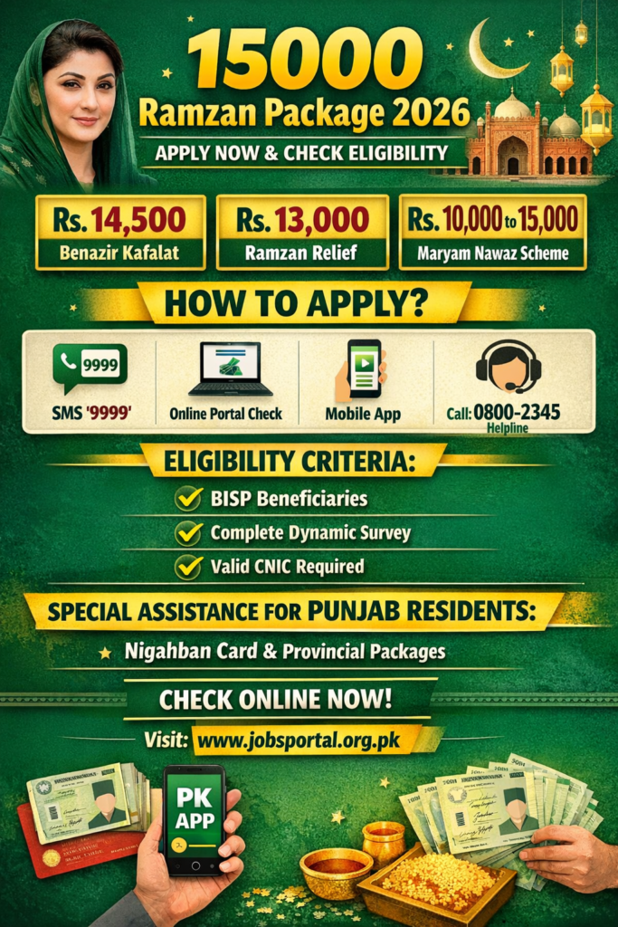 The Government of Pakistan has announced major relief initiatives under the 15000 Ramzan Package 2026, bringing financial assistance to deserving families before Eid. Under this program, eligible citizens can receive financial support ranging from Rs. 10,000, Rs. 13,000, Rs. 14,500, and up to Rs. 15,000 through different welfare schemes including the Benazir Income Support Programme (BISP) and provincial relief packages.