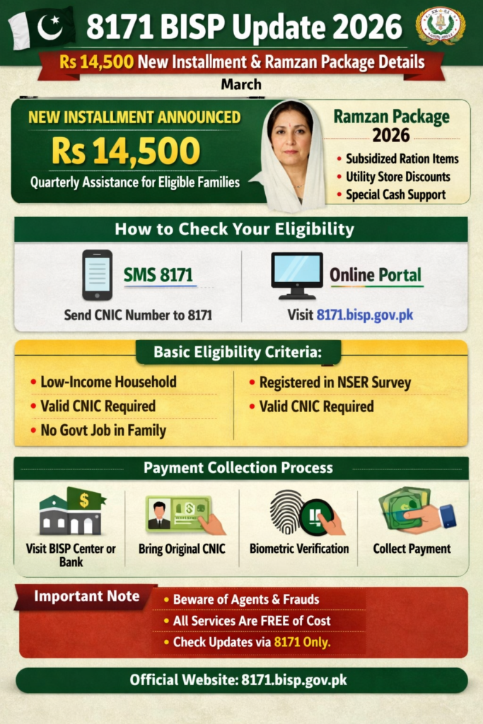Read Also BISP New Qist 14500 Update 2026 – Ramzan Package & 8171 Latest News