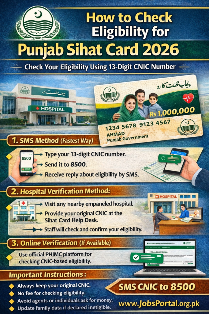 For the latest updates on Punjab Sihat Card Scheme 2026, government relief programs, 8171 updates, and Ramzan packages, keep visiting JobsPortal.org.pk for verified and timely news.
