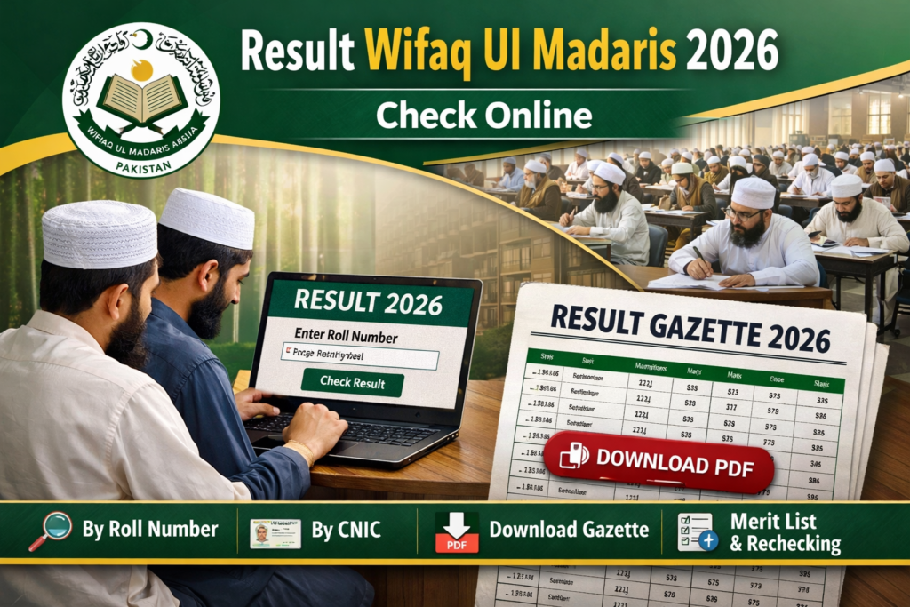 If you are also searching for Wifaq Ul Madaris result 2026, this detailed guide will help you step by step. In this article, we will explain how to check result online, by roll number, by CNIC (if available), how to download gazette, passing marks criteria, and rechecking process.